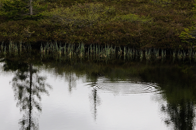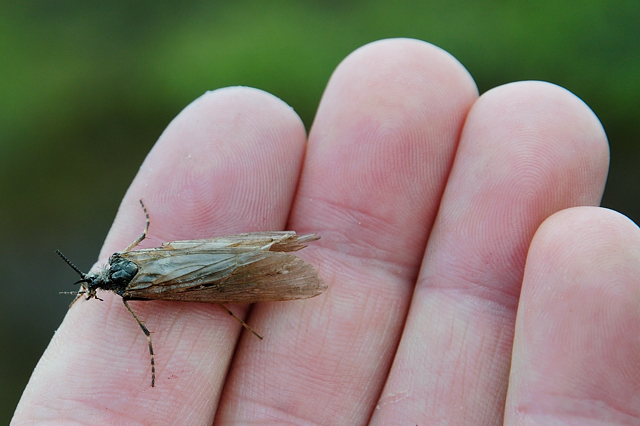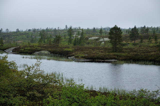 På turen hjem stoppet jeg opp i regnet ved det såkalte Badenakenvannet og kikket ut på det stille vannet som nå bare fikk lett sommerregn. Og jammen var det ikke en grov ørretrygg som rullet seg der like utenfor myrkanten! Jeg vred av meg sekken på myra og snek meg ut i kasteposisjon mens jeg observerte et antall klekkende vespertinaer rundt vakringene. På fortommen satt det allerede en passende imitasjon så første kastet var snart i gang. Flua mi ble liggende og duppe mellom regndråpene ganske akkurat der hvor fisken hadde vært oppe. Men den fikk ligge i fred. Etter et kvarters tid uten noe mer liv snellet jeg inn og gikk videre ned til bilen for å rekke hjem før minstemannen i huset legger seg klokka sju.