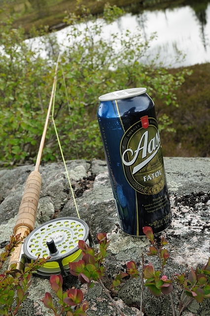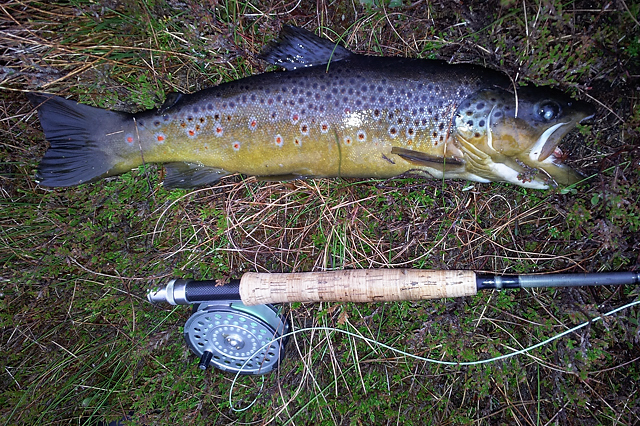 Lot treerstanga ligge. Tenkte at den blir for veik når jeg må dra tung ørret inn over starrsivstråene langs land. Femmern er lengre og har bedre rygg for denslags oppgaver.