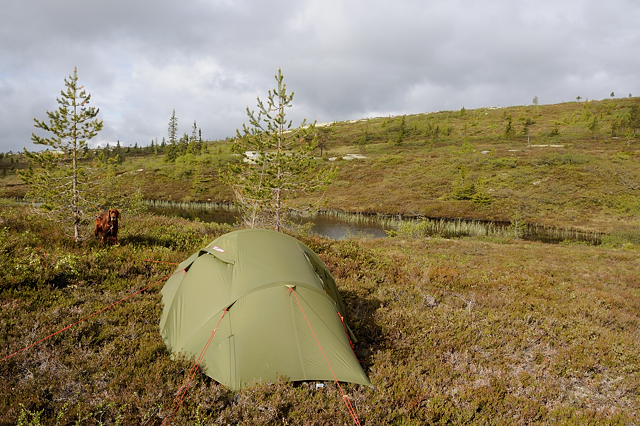 Natta var kald. Sikkert bare to-tre grader. Jeg småvåknet av at jeg frøs litt i den tynne soveposen. Men klokka åtte bråvåknet jeg av den ubehagelig teltvarmen. Sola stod på teltet og jeg måtte fort ut av drivhuset for å få luft og kaldt vann i ansiktet og magen.