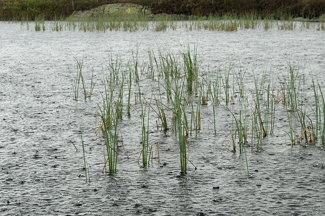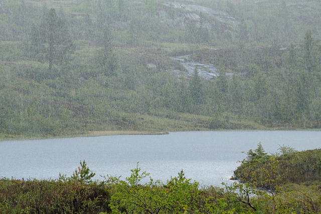 Regnskyllet var heftig og det gav seg ikke. Jeg ble kliss våt og hadde ikke kontakt med flere fisker selv om jeg fikk sjansen til å kaste på i hvert fall to veldig fine ørreter som vaket i sprutregnet. Og det regnet bare mer og mer. Jeg ble såpass våt og kald at jeg måtte trekke opp til teltet for å få tørket opp litt.